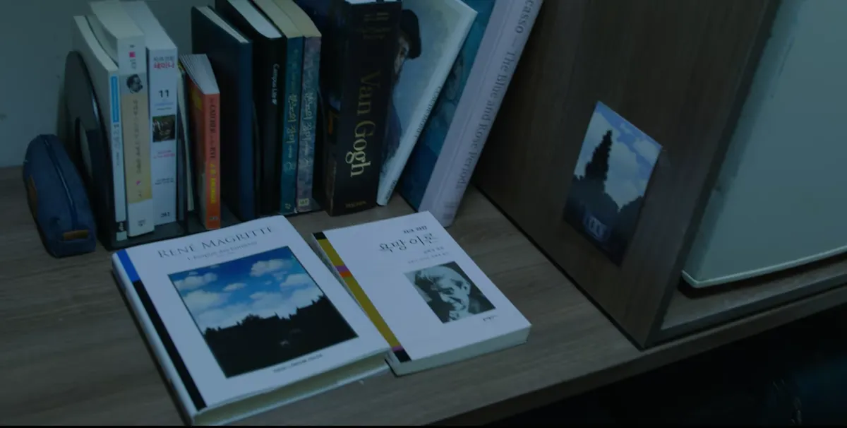 책상 위를 훑어보는 그의 시선을 따라가보면 미술가 르네 마그리트, 파블로 피카소, 빈센트 반 고흐, 클로드 모네를 다룬 서적과 자크 라캉, 니체를 읽는 이 사람은 누구일까, 궁금해집니다. 장르는 다를지 모르지만 이들은 욕망과 죽음에 대해 깊이 탐구한 사람들이죠. 그가 찾는 형이 초현실적인 세계관을 보여준 예술과 정신분석학 및 철학에 빠진 인물이란 배경을 깔고 들어갑니다.