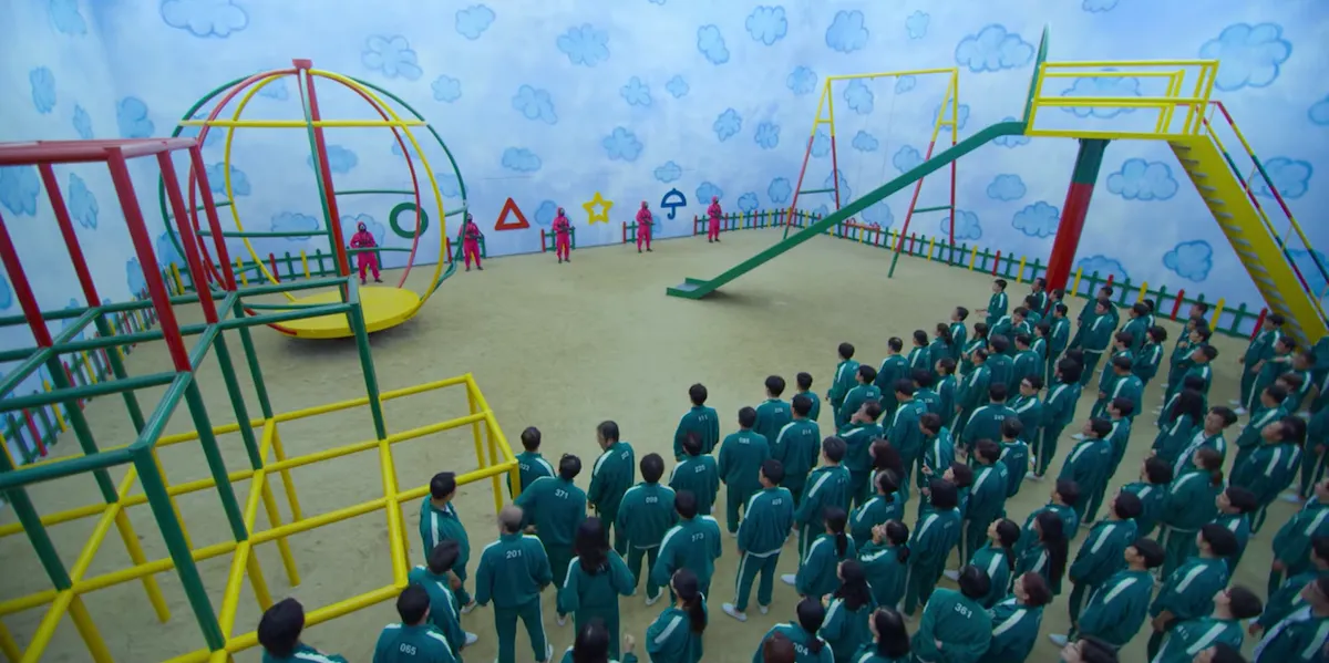 드라마는 시종일관 인물들의 상황은 끔찍하고 사실적으로 묘사하지만 게임의 무대는 발랄하고 산뜻한 색으로 채웁니다. 현실적인 디테일이 비현실적인 배경과 뒤섞이면서 초현실적인 세계를 만들어냅니다. 아이들의 놀이가 살인의 수단으로 바뀌는 섬뜩한 순간이 마그리트의 작품 속에서 보이는 '익숙한 것이 낯설게 보일 때의 공포'를 닮았습니다.
