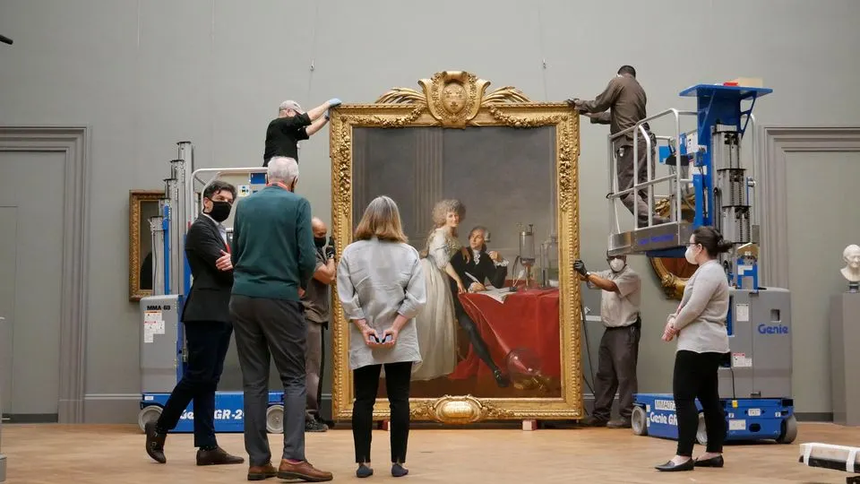 image: Jacques-Louis David's portrait of Antoine Laurent Lavoisier and Marie Anne Lavoisier, being reinstalled in the Met's galleries last November Eddie Knox