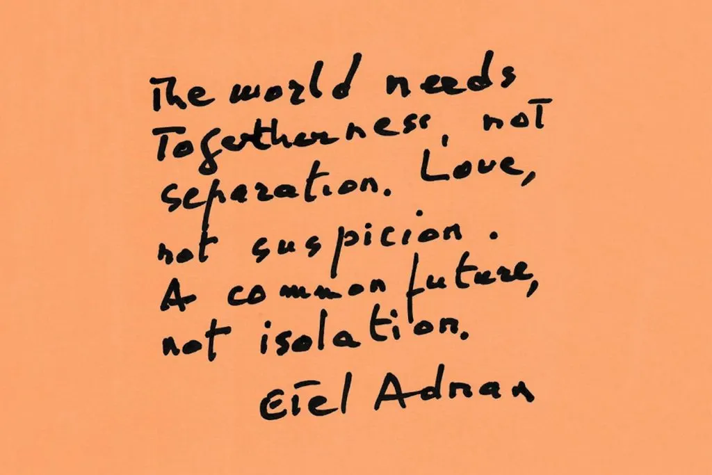 1925년 2월 24일, 레바논 베이루트에서 태어나고 자란 아드난은 24세가 되던 해에 프랑스로 건너갔습니다. 파리 소르본 대학에서 철학을 공부하고 이어서 샌프란시스코 UC 버클리 대학와 하버드 대학에서 철학을 전공했습니다. 캘리포니아에 정착하고 30대 중반부터 미술을 시작했습니다. 산과 하늘과 같은 자연 풍경을 추상화한 작업을 주로 선보였는데 폴 세잔과 파울 클레의 영향을 받은 것으로 평가받았습니다. 유화 뿐만 아니라 직물을 이용한 작품 역시 아드난 만의 조화롭고 밝은 색채와 구성을 보여줬는데요. 아드난의 따뜻하고 명상적인 작품은 꾸준히 많은 사랑을 받았습니다.