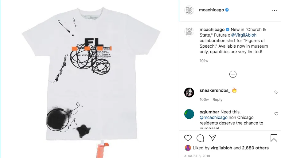 Image: Futura x Virgil Abloh collaboration shirt in 2019, via the Museum of Contemporary Art Chicago instagram